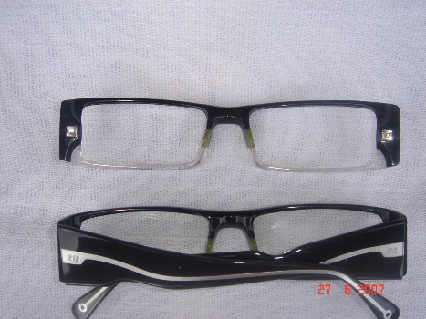 Montaje lentes de presentación, son lentes de plásticos, solo tienen el objetivo de decoración, normalmente una de las lentes se marca en la parte inferior el nombre de la colección al que pertenece la gafa